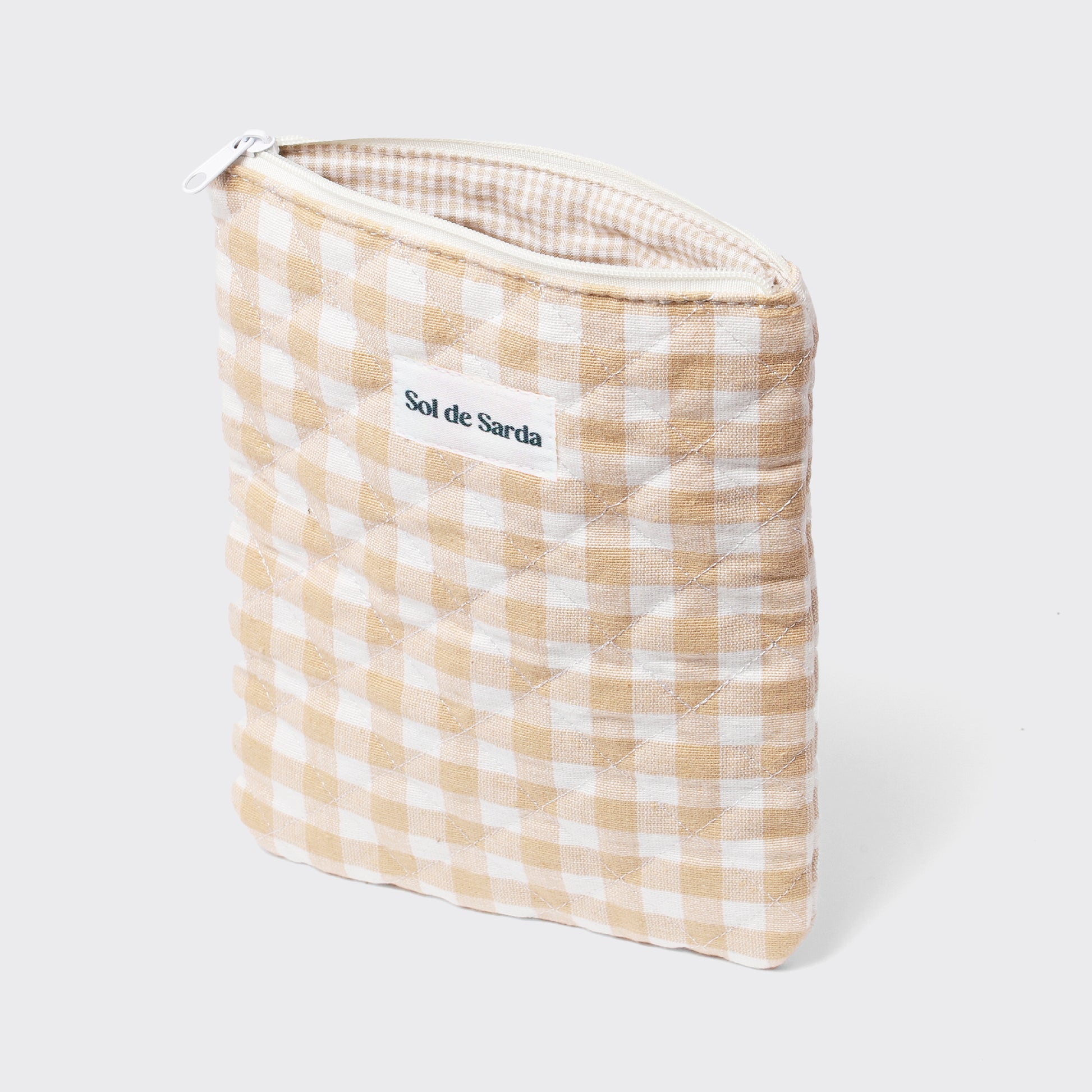Protect your Kindle in style with the Almond Kindle Cover. Made from 100% cotton and lined with soft beige gingham, it features extra padding for added protection.